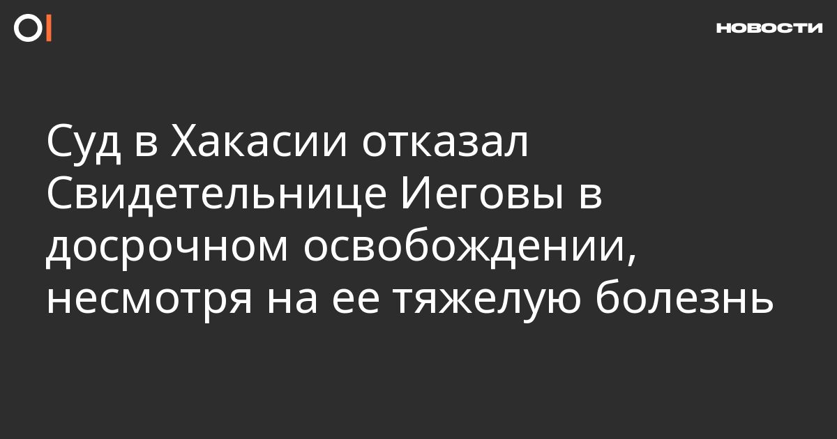 Усть-Абаканский районный суд Хакасии 18 октября отказал 70-летней Валентине Барановской в досрочном освобождении из колонии. Об этом сообщают «Свидетели Иеговы в России».